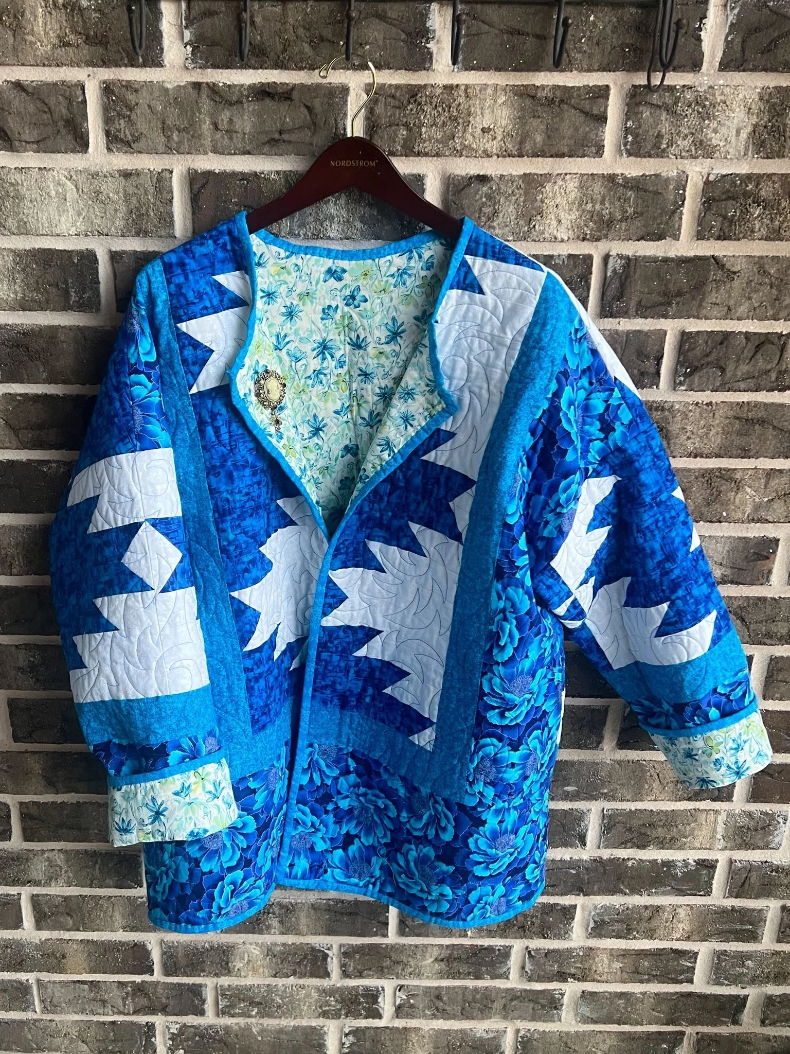 She knew instantly it would make a striking, elegant quilted coat. The boot motif adds bold character, turning the coat into a stylish statement for anyone who appreciates craftsmanship, fashion, and the art behind a good pair of boots.